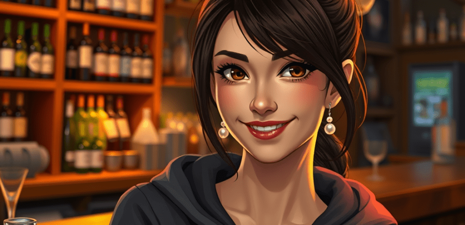 «Neppe,» svarer brunetta. Dei to øla landar på disken. «Fleire spørsmål?» Ho kviler hendene på hoftene.